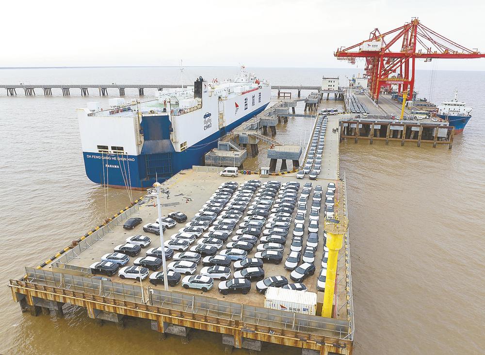 3月18日,伴隨著嘹亮的汽笛聲,2850輛奇瑞等國(guó)產(chǎn)品牌汽車搭載巴拿馬籍鹽城港“和順號(hào)”輪,從鹽城港大豐港區(qū)滾裝碼頭正式發(fā)往墨西哥馬薩特蘭。此次鹽城口岸汽車出口既是該口岸今年汽車首次出口,也是“乙類乙管”后首次整車出境。