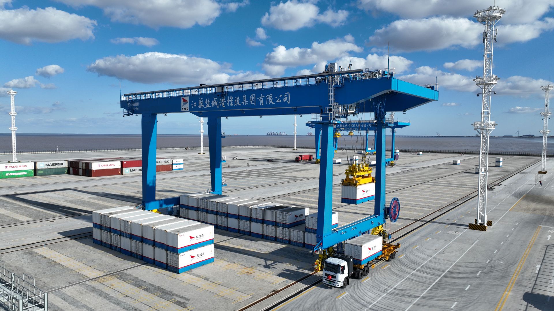 鹽城港自動化集裝箱堆場項目由江蘇鹽城港智慧港口有限公司投資建設(shè),總投資4.5億元,綜合運用5G、自動化控制、北斗定位、數(shù)字孿生、智能一體化TOS(集裝箱操作系統(tǒng))等先進(jìn)技術(shù),進(jìn)行數(shù)字化、智能化、多維度融合,實現(xiàn)設(shè)備遠(yuǎn)程控制、全過程設(shè)備調(diào)度一體化、生產(chǎn)作業(yè)現(xiàn)場無人化,年周轉(zhuǎn)集裝箱達(dá)100萬標(biāo)箱。滿負(fù)荷生產(chǎn)運營后,預(yù)計可實現(xiàn)年營業(yè)收入1.4億元。