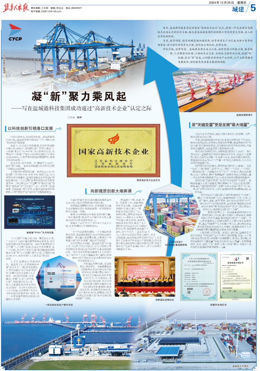 一個個科創(chuàng)成果的涌現(xiàn)、一個個突破性進展的獲取,是鹽城港集團以高水平科技創(chuàng)新引領(lǐng)集團一體化融合高質(zhì)量發(fā)展,在新質(zhì)生產(chǎn)力賽道上按下的“快進鍵”、跑出的“加速度”。