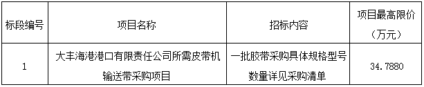 (1)項(xiàng)目名稱:大豐海港港口有限責(zé)任公司所需皮帶機(jī)輸送帶采購(gòu)項(xiàng)目