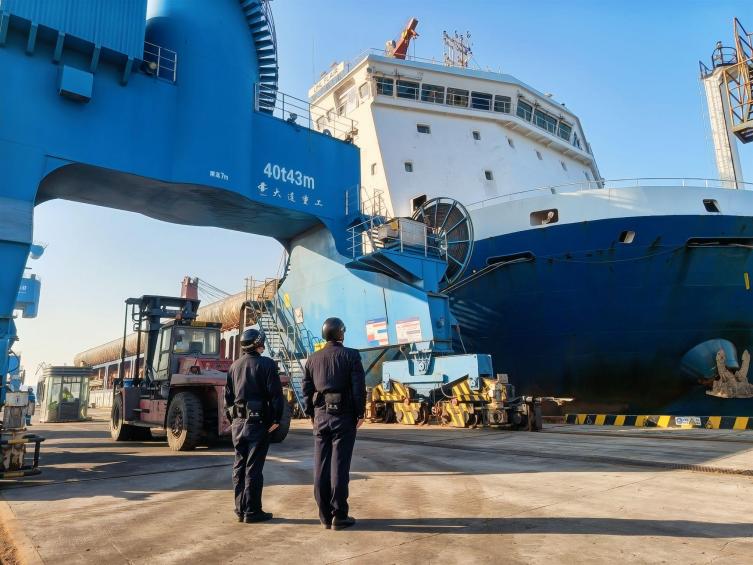 “UHL FLAIR”輪吃水深,為確保其于當(dāng)日9時(shí)灌河口當(dāng)月最大潮水時(shí)段安全出港,海關(guān)、海事、邊檢、引航、港口多部門緊密聯(lián)動(dòng)、協(xié)同發(fā)力,筑牢外貿(mào)運(yùn)輸保障線。海關(guān)全程指導(dǎo)關(guān)心,進(jìn)一步完善“船邊直裝”監(jiān)管模式,精簡(jiǎn)通關(guān)流程、提升通關(guān)效率,有效降低裝船時(shí)間,為貨物快速放行保駕護(hù)航;海事部門科學(xué)優(yōu)化進(jìn)出航道船舶調(diào)度,精準(zhǔn)管控通航秩序,排除各類航行安全隱患;邊檢主動(dòng)靠前服務(wù),推行網(wǎng)上預(yù)報(bào)預(yù)檢服務(wù),實(shí)現(xiàn)邊檢手續(xù)“一次辦妥、高效辦結(jié)”,大幅縮短船舶在港停留時(shí)間;引航站提前一周鉆研最新航道測(cè)繪圖,結(jié)合潮汐規(guī)律量身制定引航方案,確保船舶航行安全可控;響水港區(qū)堅(jiān)持安全底線,實(shí)行掛圖作戰(zhàn),精準(zhǔn)測(cè)算每件管樁到港與裝船時(shí)序,細(xì)化環(huán)節(jié)責(zé)任,實(shí)現(xiàn)全程高效作業(yè)。