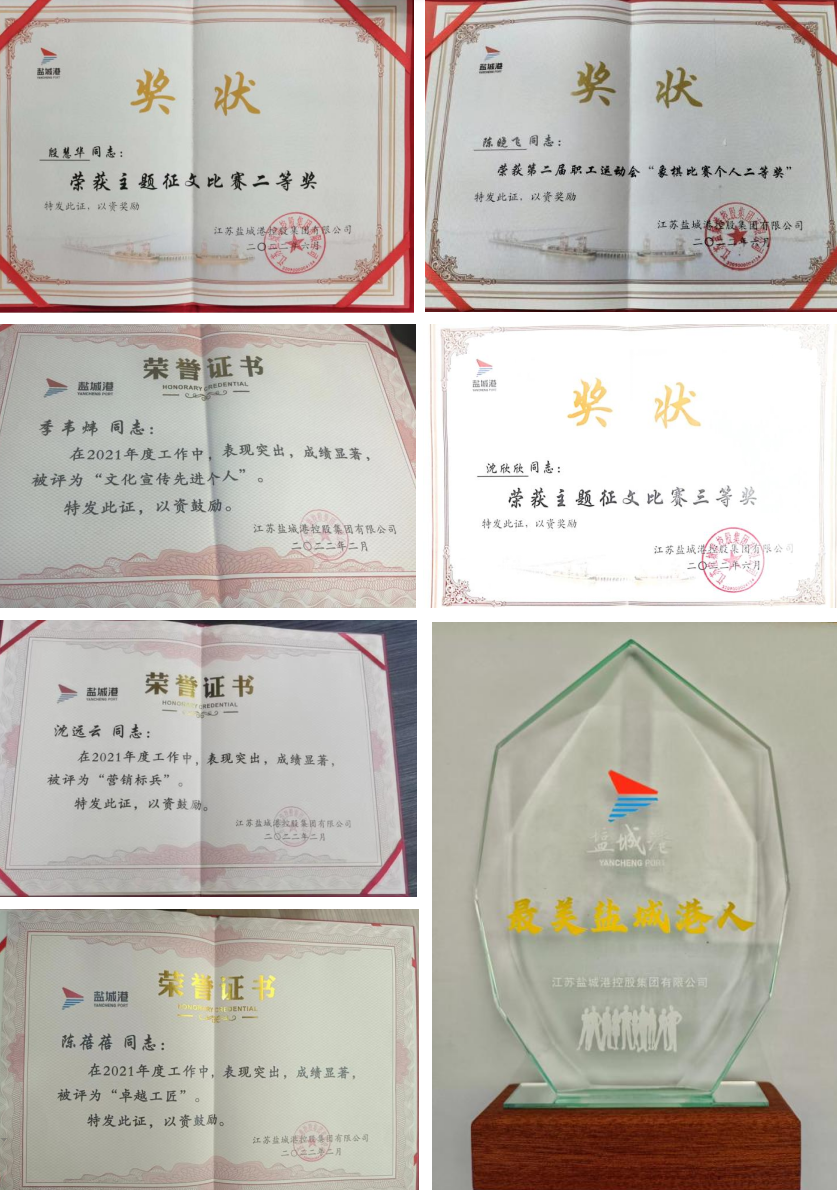 2022年,文旅集團(tuán)黨總支和港泊半島酒店支部被評為“先進(jìn)基層黨組織”。文旅集團(tuán)洪兵、韓世軍在鹽城港集團(tuán)“七一”表彰中獲評優(yōu)秀共產(chǎn)黨員稱號,蔣雷獲評優(yōu)秀共青團(tuán)員稱號。港泊半島酒店職工張曉芳、湯以新、蔣慧等同志分別獲得大豐區(qū)技能狀元、鹽城市技術(shù)能手、大豐區(qū)五一勞動(dòng)獎(jiǎng)?wù)?、大豐區(qū)青年崗位能手、大豐區(qū)巾幗建功標(biāo)兵稱號。