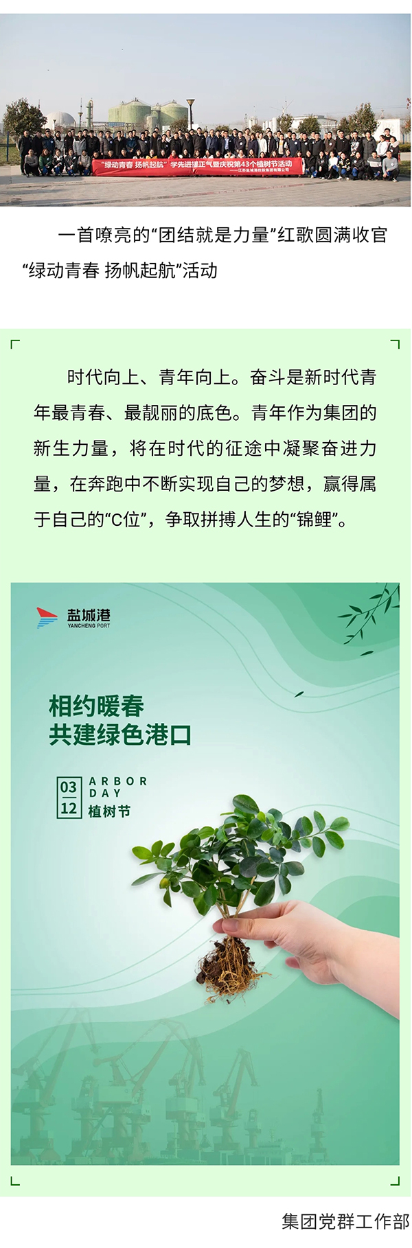 綠動(dòng)青春 揚(yáng)帆起航丨鹽城港集團(tuán)開(kāi)展青年職工學(xué)先進(jìn)提正氣暨慶祝第43個(gè)植樹節(jié)活動(dòng)