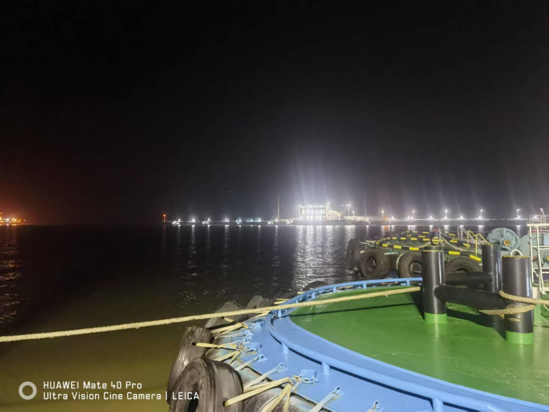 面對(duì)“晨昏蒙影”特殊時(shí)段(黎明前光線昏暗期),引航員提前1小時(shí)登輪,與船長(zhǎng)反復(fù)核對(duì)潮汐、流速和船舶操縱特性。在朝陽(yáng)初升的關(guān)鍵窗口期,引航員通過(guò)精準(zhǔn)操控,在大馬力拖輪協(xié)同配合下,克服船舶慣性、風(fēng)流壓差等技術(shù)難點(diǎn)完成精準(zhǔn)靠泊。