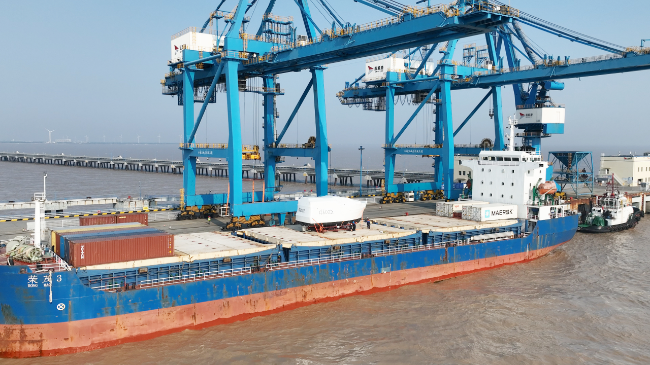 近日,航運集團內(nèi)河多用途“大港集005”船舶,裝載著由瀚斯曼(東臺)游艇有限公司制造的大型豪華游艇,從東臺富安鎮(zhèn)內(nèi)河碼頭始發(fā)抵達大豐港區(qū),經(jīng)由“滬鹽專線”直達上海洋山港1期碼頭,隨后搭載大船出口至美國查爾斯頓港。至此,航運集團完成游艇新貨種的運輸任務(wù),同時也標(biāo)志著鹽城港大豐港區(qū)至東臺內(nèi)河航線的順利開通,鹽城港對外航線數(shù)量達到61條。