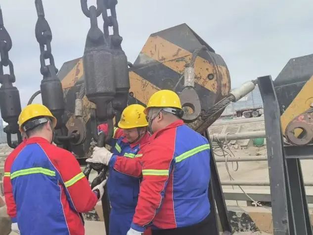 安全,是港口生產(chǎn)永遠不可逾越的紅線,設備安全更是重中之重。生產(chǎn)保障組24小時堅守崗位,時刻守護著港口設備的安全運行。他們依據(jù)門機使用頻率、作業(yè)環(huán)境及磨損數(shù)據(jù)等詳細信息,“量體裁衣”地為每一臺設備制定保養(yǎng)方案。為關(guān)鍵部位充分潤滑,確?!颁撹F巨人”能夠運轉(zhuǎn)流暢;鋼絲繩等重點部件接受“點檢員”細致入微的檢查,不放過一絲隱患裂痕,為安全生產(chǎn)筑起堅實的“防護墻”。