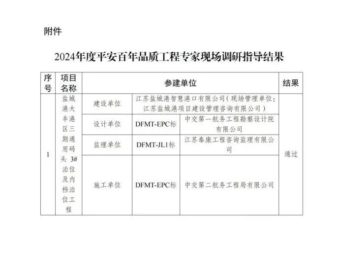 近日,省交通運(yùn)輸廳公布2024年度“平安百年品質(zhì)工程”專家現(xiàn)場調(diào)研指導(dǎo)結(jié)果,鹽城港大豐港區(qū)三期通用碼頭3#泊位及內(nèi)檔泊位工程成功通過,標(biāo)志著鹽城港在省級“品質(zhì)工程”創(chuàng)建領(lǐng)域取得了歷史性突破。