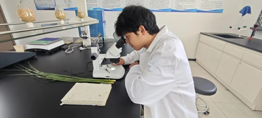 在水稻拔節(jié)孕穗的關(guān)鍵階段,金色農(nóng)業(yè)的生產(chǎn)技術(shù)人員著手對(duì)制種稻進(jìn)行花期剝查工作。技術(shù)員運(yùn)用專業(yè)手法剝開水稻主莖葉片,借助解剖鏡、顯微鏡等精密工具,細(xì)致觀察父母本幼穗的形態(tài)及余葉動(dòng)態(tài),精準(zhǔn)預(yù)測(cè)花期差距。這一技術(shù)環(huán)節(jié)已被納入制種全流程管控體系,使得看似簡(jiǎn)單的操作成為判斷父母本花期是否相遇、確保授粉成功的關(guān)鍵“黃金標(biāo)準(zhǔn)”。