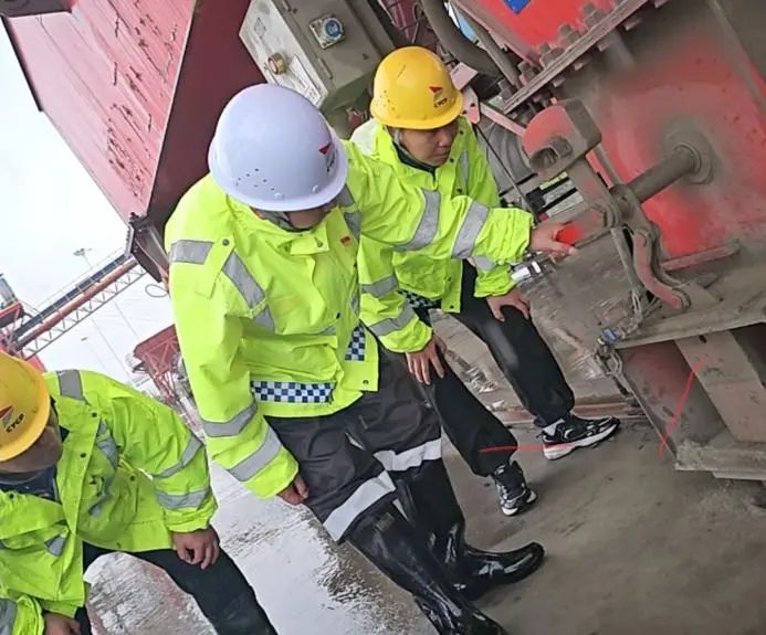 搶修現(xiàn)場的“洋陽”班組,天生一副消化艱難的“鋼鐵胃”。寒夜里,他們蜷在提升機(jī)進(jìn)料口的鐵殼內(nèi),用凍僵的手指摳出堵塞的凍渣;酷暑中,汗水把工服焊成第二層皮膚?!把箨枴卑嘟M成員分工明確、配合默契,始終保持高度的責(zé)任感和使命感,發(fā)揚“不怕苦、不怕累”碼頭人精神,高質(zhì)高效完成各項困難任務(wù)。年初那場零下的搶修,五小時的鏖戰(zhàn)讓手套結(jié)冰碴,卻沒人丟下一句怨言—碼頭上“目標(biāo)必達(dá)”的承諾,從來不是貼在墻上的標(biāo)語,而是烙進(jìn)骨血的基因。