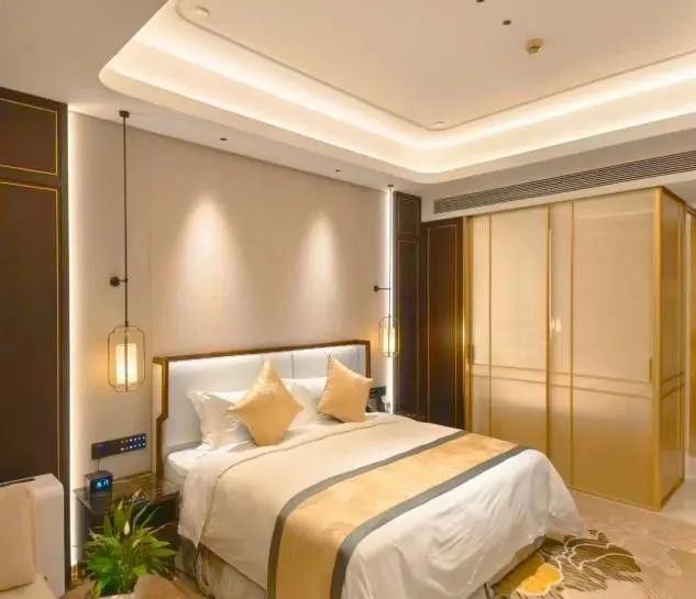 407間雅致客房,30㎡起跳的寬敞格局,是秋日舒展身心的最佳畫布。憑窗遠(yuǎn)眺,花園層林盡染,日月湖碧波映照著高遠(yuǎn)秋空。2025煥新升級(jí)的智能客房,讓舒適觸手可及:一鍵切換閱讀暖光或安眠模式,智能窗簾開合間,湖光秋色盡攬入懷。