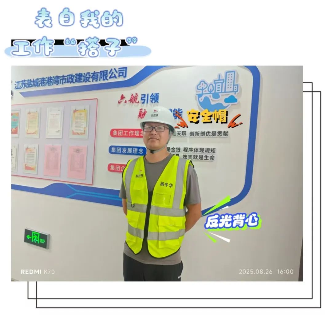 “每次踏入現(xiàn)場,安全帽為我筑牢‘防護墻’,反光背心讓我在環(huán)境中‘醒目在線’,這對‘黃金搭子’,是守護安全的底氣!就像七夕里的雙向奔赴,我們互相守護,在安全路上‘不離不棄’?!?/p>