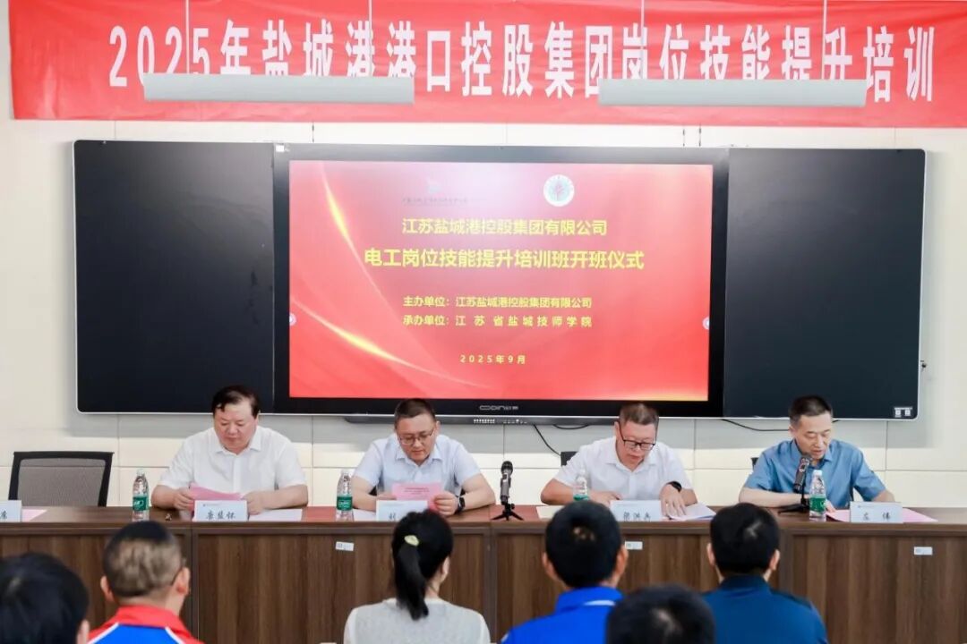 9月27日,鹽城港集團(tuán)電工取證班在鹽城技師學(xué)院正式開(kāi)班,標(biāo)志著鹽城港集團(tuán)、鹽城技師學(xué)院與鹽城市人才集團(tuán)攜手開(kāi)啟 “三方協(xié)同、精準(zhǔn)賦能” 人才培養(yǎng)新篇章,為港口人才隊(duì)伍建設(shè)注入新活力。鹽城技師學(xué)院唐監(jiān)懷校長(zhǎng),鹽城港集團(tuán)黨委委員、副總經(jīng)理梁洪兵,黃海金控黨委委員、副總經(jīng)理、鹽城市人才集團(tuán)董事長(zhǎng)劉偉及校方相關(guān)領(lǐng)導(dǎo)出席活動(dòng),共計(jì)30名參訓(xùn)學(xué)員參加開(kāi)班儀式。