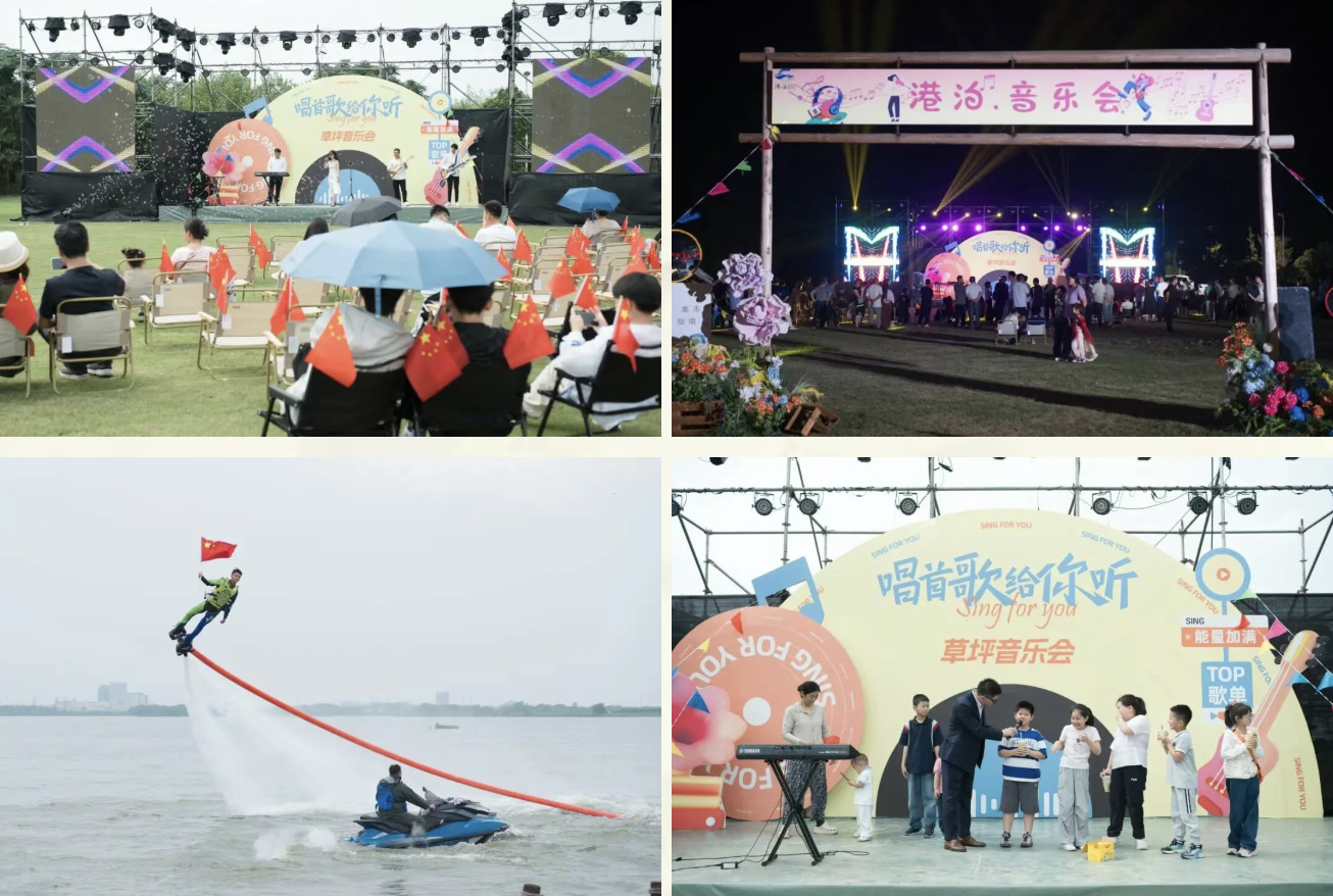 如果說(shuō)非遺是文化的沉淀,那么音樂(lè)、露營(yíng)與水上運(yùn)動(dòng)則為假日注入了青春活力。日月湖上,摩托艇、空中飛人等水上項(xiàng)目吸引年輕人逐浪而行;草坪露營(yíng)區(qū)飄起燒烤香氣,伴隨著民謠樂(lè)隊(duì)的現(xiàn)場(chǎng)演唱,游客們圍坐暢談,盡享秋日浪漫。創(chuàng)意市集與文創(chuàng)展區(qū)不僅為游客提供了將好物帶回家的機(jī)會(huì),更讓人們通過(guò)視覺(jué)、聽(tīng)覺(jué)、味覺(jué)、觸覺(jué)等多維度的感受,領(lǐng)略港泊文旅的獨(dú)特韻味?!皼](méi)想到非遺能這么潮!白天玩水上項(xiàng)目,晚上看火壺表演,假期安排得滿滿當(dāng)當(dāng)?!睆哪暇┳择{而來(lái)的游客表示。