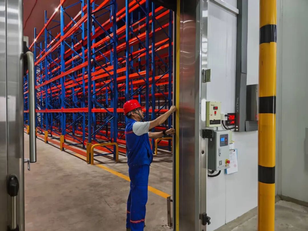 為減少冷量流失、降低設(shè)備運行壓力,港匯保稅從“規(guī)范管理+物理防護”雙管齊下。優(yōu)化開門管理:明確冷庫門使用規(guī)范并張貼展板上墻,同步優(yōu)化作業(yè)流程,單次開門作業(yè)不超過5分鐘、非必要不頻繁開關(guān)門,減少冷量外泄;強化保溫修補:定期檢查庫體保溫層,對發(fā)現(xiàn)的裂縫、孔洞等破損,采用高性能保溫材料及時修補,從源頭減輕制冷設(shè)備負(fù)荷,既延長設(shè)備使用壽命,又進一步減少能耗損耗。