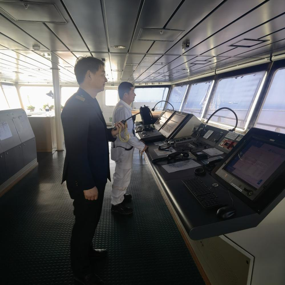 作業(yè)過(guò)程中引航員手持對(duì)講機(jī)精準(zhǔn)發(fā)令,拖輪協(xié)同配合穩(wěn)控船身;調(diào)度室里,實(shí)時(shí)數(shù)據(jù)跳動(dòng)間,靠離泊時(shí)間被科學(xué)壓縮。這高效的配合,為海纜吊裝、規(guī)范綁扎擠出了寶貴時(shí)間,讓每一批海纜都能按時(shí)登船,也讓全年引航任務(wù)實(shí)現(xiàn)“零差錯(cuò)”。
