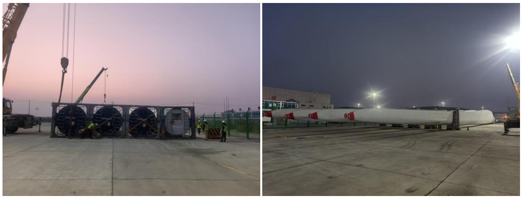 “百日攻堅”號角吹響以來,鹽城港保稅物流中心主動聚焦重大件貨物物流服務(wù)痛點難點,將風(fēng)電葉片入庫作業(yè)列為重點攻堅任務(wù)。籌備階段,中心組建專項攻堅小組,綜合研判運輸銜接、場地調(diào)度、機械適配等多維度因素,制定“一貨一策”詳盡作業(yè)方案,對流程節(jié)點逐一梳理、閉環(huán)解決;同步協(xié)調(diào)管委會、海關(guān)等職能部門,針對風(fēng)電葉片運輸?shù)缆吠ㄐ行枨?,通過拆除影響通行的路燈等舉措保障道路通暢,進一步優(yōu)化作業(yè)保障體系;搭建分工明確、協(xié)同高效的作業(yè)團隊,提供全程精細(xì)化服務(wù)。針對風(fēng)電葉片“超長、超重”的特性,中心專項開展安全操作集中培訓(xùn),明確崗位職責(zé)、規(guī)范統(tǒng)一指揮流程,強化安全技術(shù)交底與風(fēng)險點辨識控制,全方位筑牢大件作業(yè)安全防線,以專業(yè)能力為攻堅任務(wù)保駕護航。
