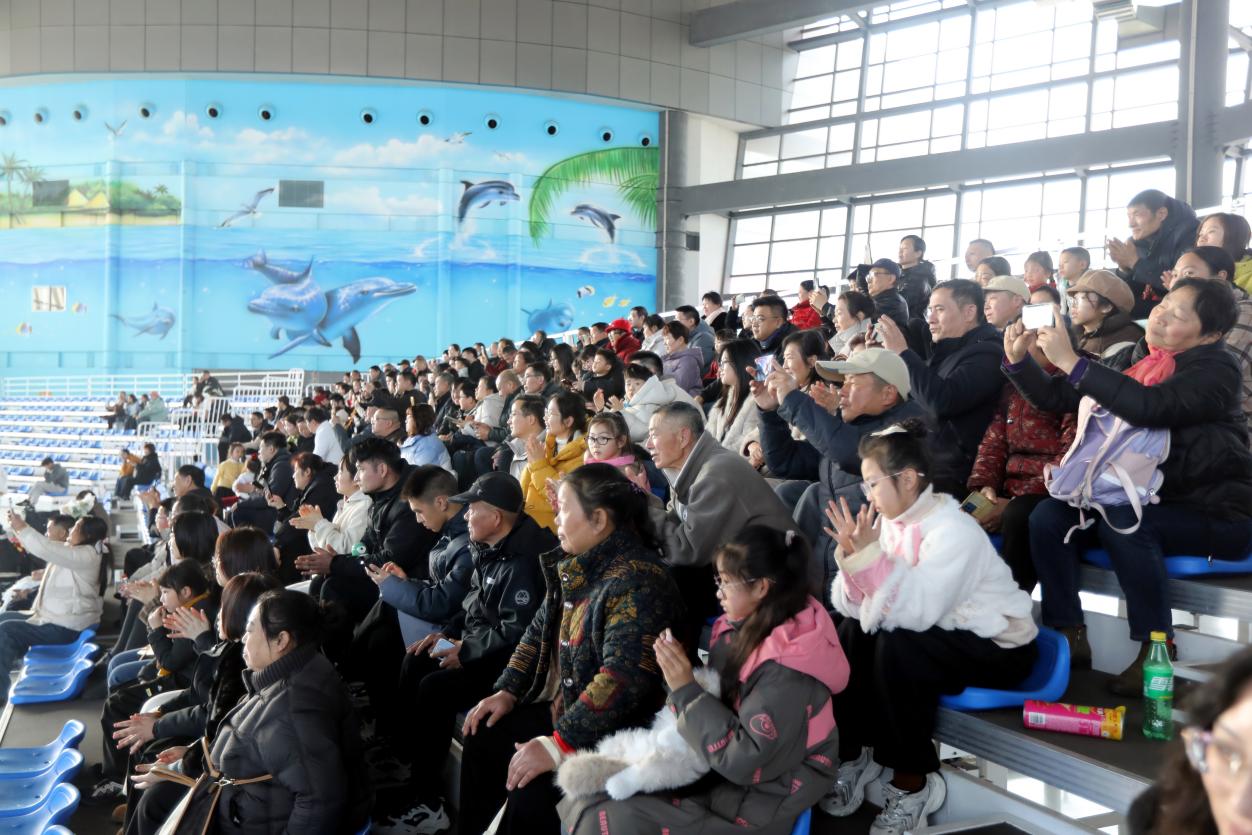 特色打卡場(chǎng)景前,游客們紛紛駐足,用鏡頭記錄下這份獨(dú)特的年味記憶。海豚表演區(qū)更是人氣爆棚,聰明可愛的海豚在馴獸師的指揮下,完成了一系列高難度動(dòng)作,引得觀眾陣陣掌聲與歡呼。