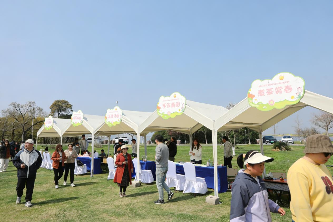 “春滋味”零食茶歇區(qū)彌漫著春日的氣息。甜品師現(xiàn)場教授青團制作,家長與孩子一同揉面、包餡,品嘗親手制作的時令美味。茶道體驗區(qū),專業(yè)茶藝師展示春日新茶沖泡技藝,家長在遛娃間隙細品茶香,享受片刻寧靜雅致的慢生活。游戲互動區(qū)里,兩人三足、套圈、投壺、趣味接力等親子游戲輪番開展,親子組隊參與,現(xiàn)場歡聲笑語不斷。