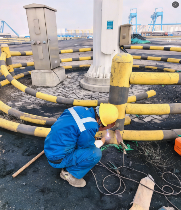 在烈焰與鐵水交織的作業(yè)現(xiàn)場,他們是當之無愧的“鋼鐵工匠”。當門機鋼構(gòu)出現(xiàn)細微裂紋,當鋼絲繩防跳槽裝置亟待優(yōu)化升級,手握焊槍的他們,以火為針、以鐵為線,在千度高溫中完成一次次精準的“設備修復手術(shù)”。每一道焊縫都承載著責任,每一次技術(shù)攻關(guān)都守護著安全,焊花飛濺間,他們筑牢了港口生產(chǎn)的“鋼鐵骨架”,讓萬噸巨輪的裝卸作業(yè)萬無一失,為港口的高效運轉(zhuǎn)筑牢硬件根基。