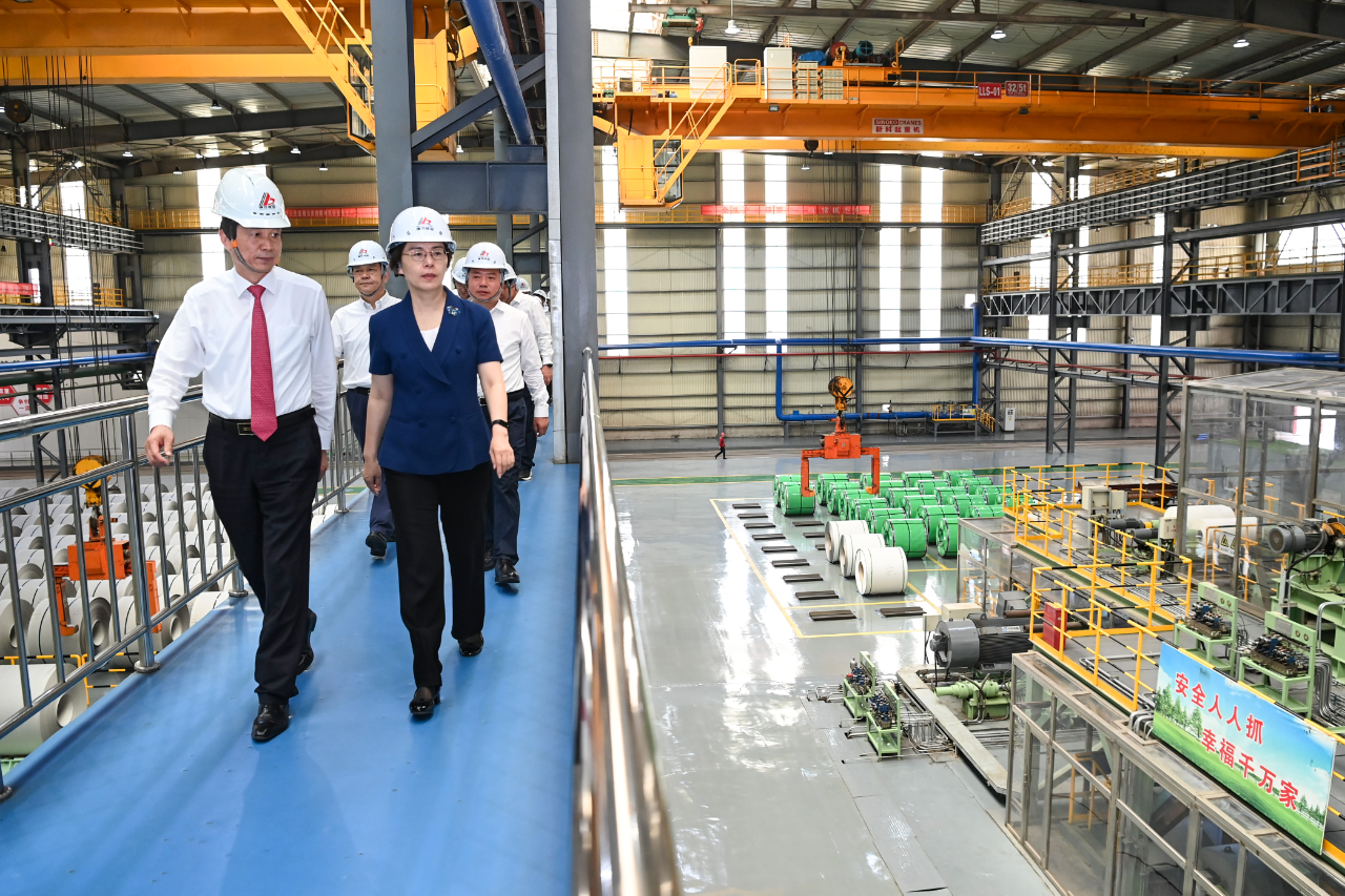 在高卡輕合金項(xiàng)目車間,徐纓詳細(xì)了解工藝裝備、核心技術(shù)和產(chǎn)品性能,鼓勵(lì)企業(yè)搶占更廣市場(chǎng),盡快實(shí)現(xiàn)達(dá)產(chǎn)滿產(chǎn)。