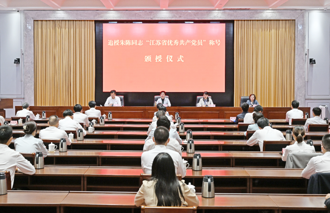 頒授儀式前,徐纓等會(huì)見(jiàn)了朱陳同志親屬。頒授儀式上,市委常委、組織部部長(zhǎng)費(fèi)堅(jiān)宣讀了省委《關(guān)于追授朱陳同志“江蘇省優(yōu)秀共產(chǎn)黨員”稱號(hào)的決定》。朱陳同志親屬孫麗霞代表全家表達(dá)了感激之情。她表示,將在平凡的工作中腳踏實(shí)地做好本職工作,不忘初心、牢記使命,不辜負(fù)黨和組織的厚愛(ài)。