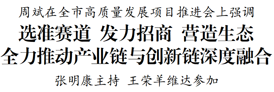 周斌在全市高質(zhì)量發(fā)展項(xiàng)目推進(jìn)會(huì)上強(qiáng)調(diào):選準(zhǔn)賽道 發(fā)力招商 營(yíng)造生態(tài) 全力推動(dòng)產(chǎn)業(yè)鏈與創(chuàng)新鏈深度融合