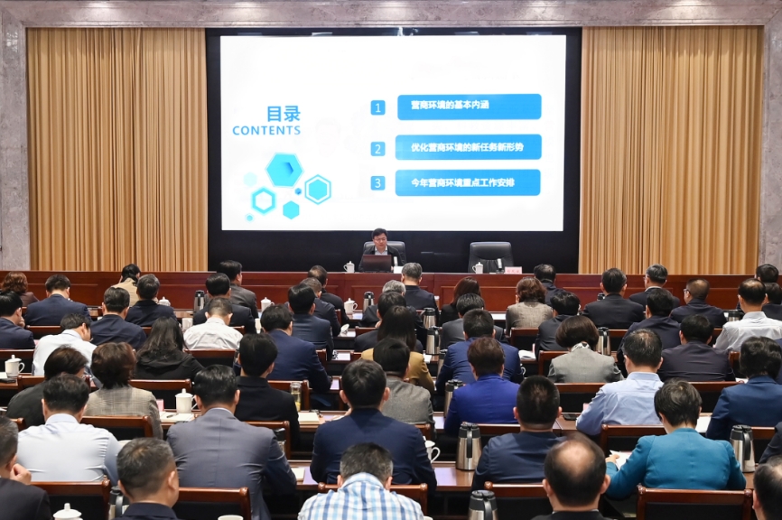 張明康在主持會議時指出,各地各部門要站位全局、提高認(rèn)識,深入學(xué)習(xí)領(lǐng)會、認(rèn)真貫徹落實會議精神,推出更多針對性強、含金量更高的政策措施,營造更加濃厚的尊商重商親商安商氛圍,全力打造營商環(huán)境“升級版”。要對標(biāo)一流、深化改革,以市場化增活力、法治化穩(wěn)預(yù)期、國際化添動力,對照任務(wù)清單抓好落實,讓企業(yè)和群眾感受到更多新變化新氣象。要凝聚合力、久久為功,堅持齊抓共管,加強協(xié)同聯(lián)動,強化宣傳引導(dǎo),共同營造優(yōu)化營商環(huán)境的良好氛圍。
